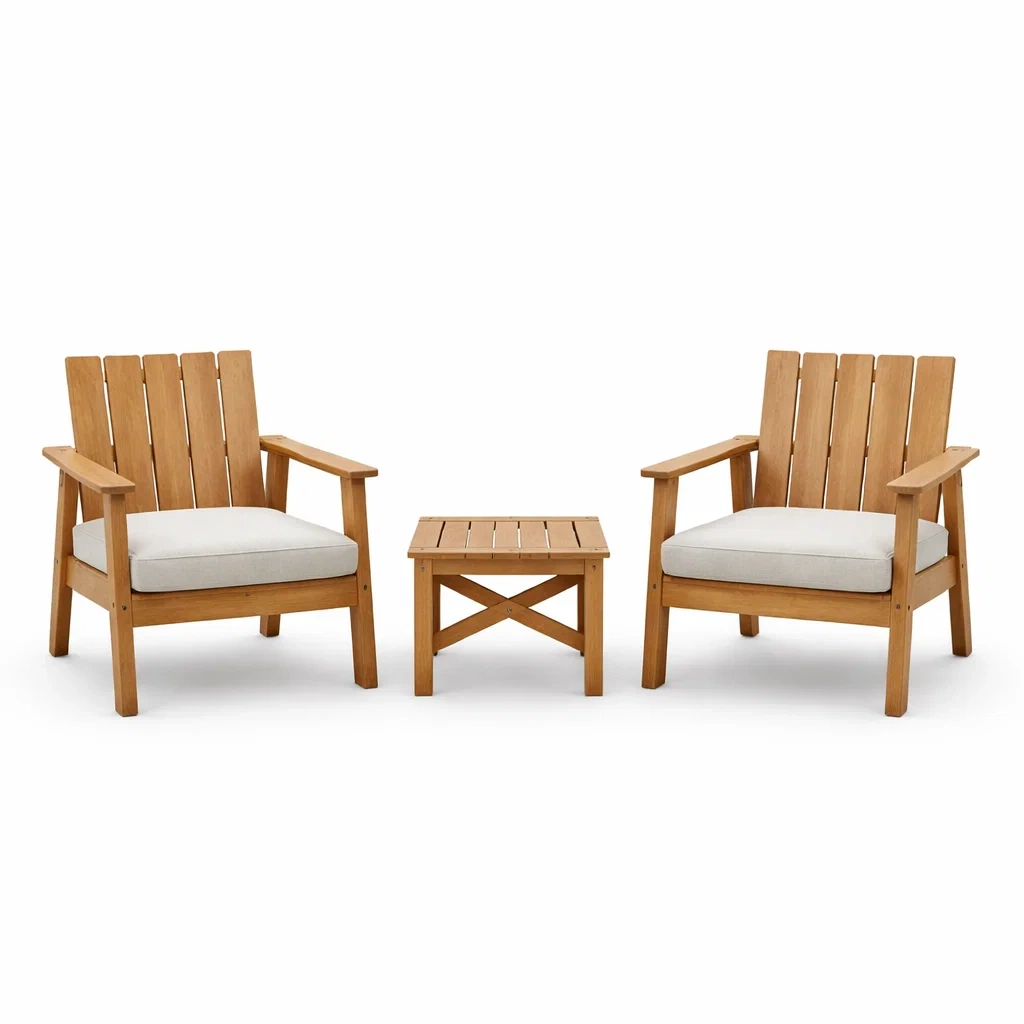 Ensemble de détente en bois avec fauteuils et table