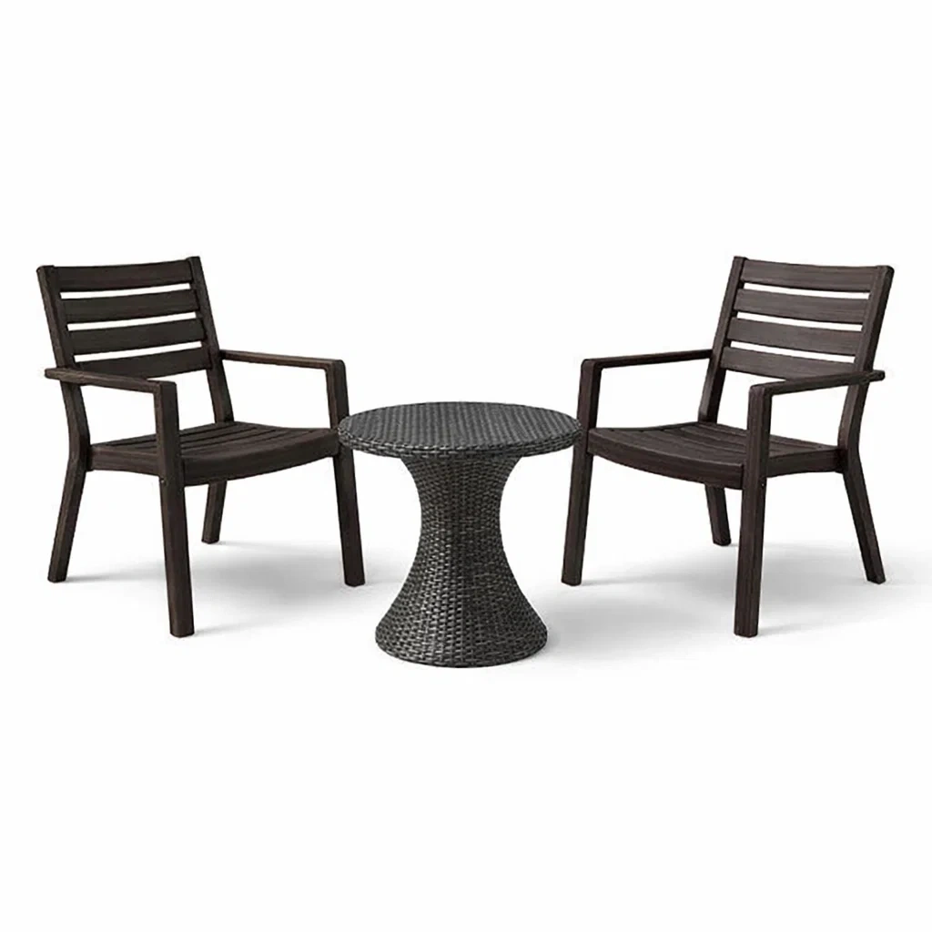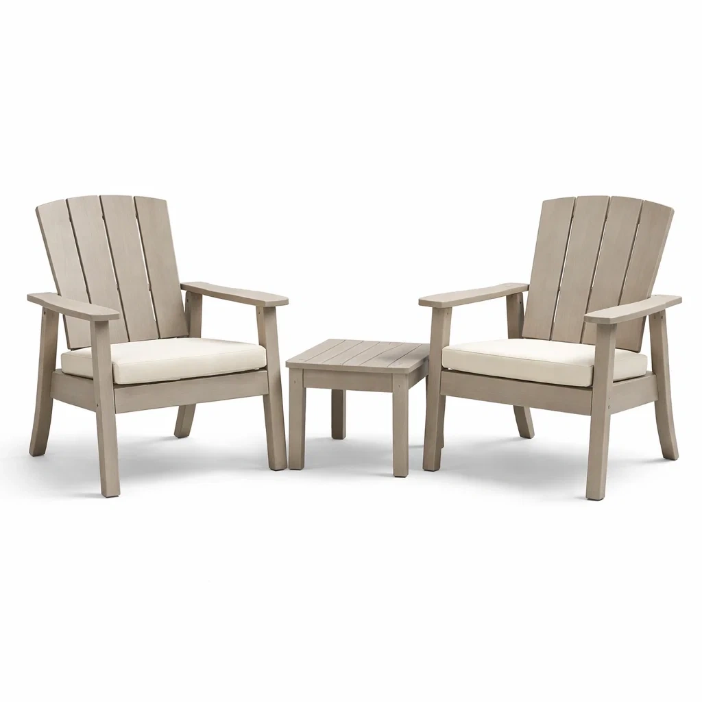 Ensemble de détente en bois composite gris foncé avec fauteuils adirondack et table